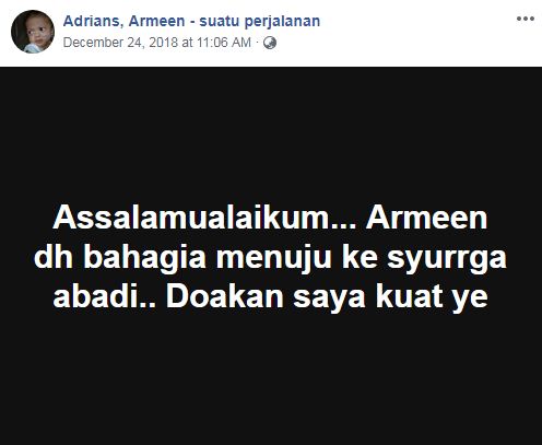 Tapi pada usia 1 tahun 7 bulan Armeen pergi meninggalkan semua