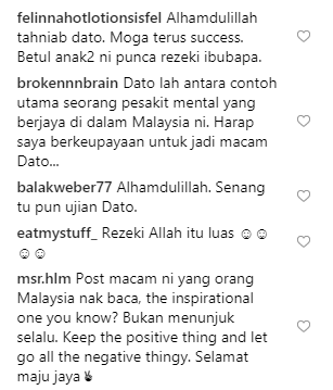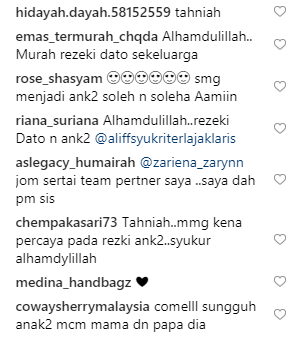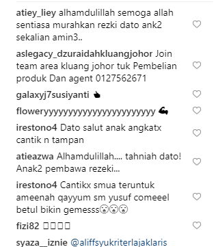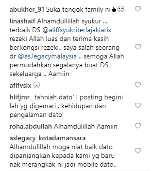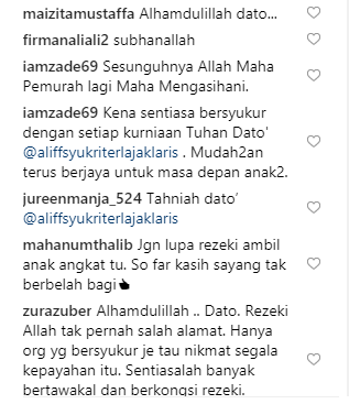 Posting beliau mendapat pujian daripada netizen. Ramai yang mendoakan semoga beliau terus dimurahkan rezeki. Ada juga yang memuji perkongsian yang dimuatnaik kali ini lebih baik dan ingin dibaca orang ramai sebagai inspirasi berbanding posting-posting Aliff Syukri yang sentiasa mengundang kecaman.